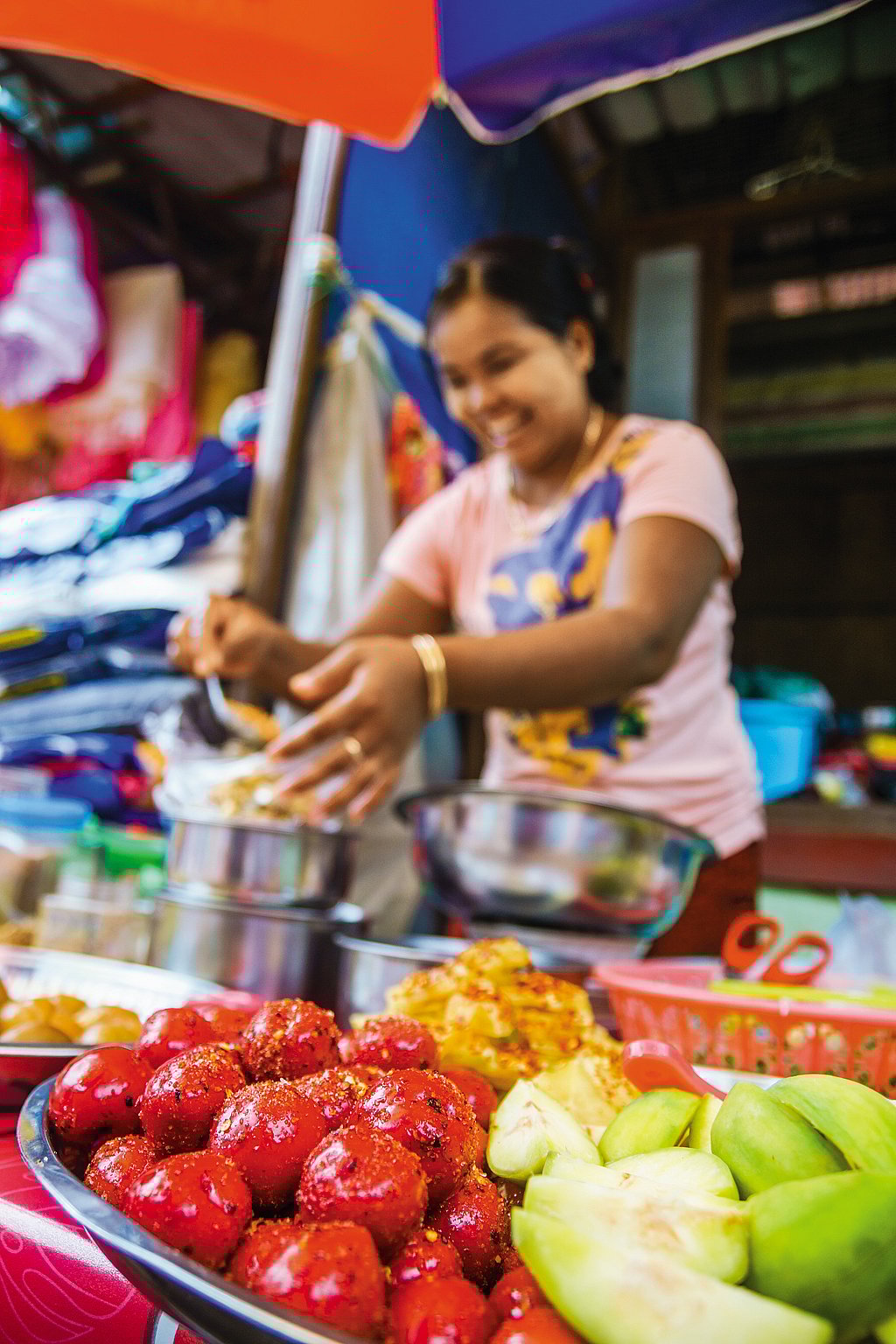 Without knowing the language the safest bet is to let your chef decide what to whip up for you. You might initially happen to end up receiving a plate of Thimbodheeto&mdashstrips of steamed chickpea flour, julienned raw cabbage, chillies mixed with a whole bouquet of mysterious powders, oils, powders and sauces&hellip Or perhaps a Lapetto&mdashmade of Lappe, an even yummier mix of tomatoes, nuts, chickpea flour, a bunch of aromatic Thai-Burmese style fish sauces and lemon juice, among other salad ingredients. Not everything on offer is mixed up, though. Starfruit is often eaten plain, while Mamandi&mdasha flamboyantly red sour ball-shaped fruit can be eaten with just a sprinkle of chilli flakes.