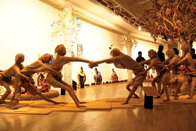 The museum stands out from all others in the country because of the way its exhibits are put up. It does not conform to the old, sedate style of showing individual artworks as distinct masterpieces, with little contextual information. Instead, it celebrates the ways of life practised by the seven major tribes in the state &ndash the Gond, Bheel, Korku, Baiga, Sahariya, Kol and Bhariya &ndash through their crafts. In a series of riotously colourful galleries whose roofs soar as high as three-storey buildings, the dramatically-lit artefacts project tribal living, aesthetics, and spiritual beliefs. Another couple of galleries showcase the state&rsquos cultural diversity and the works of the tribals of Chhattisgarh. The artworks can hang from trees, can leap at you from walls, or, in one gallery, can be seen from a two-storeyed wooden porch in the middle. The kudos for the exhibit design goes to Chandan Singh Bhatti, an artist who heads Bharat Bhavan&rsquos graphics department.