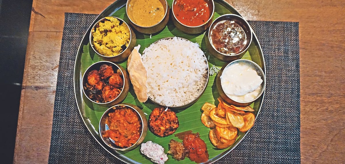 After the stressful car journey from Thanjavur along a crowded two-lane highway, I can feel myself physically begin to relax as the spiritual calm washes over me. There are 30 cottages spread over 15 acres, with the vast space designed like an &ldquoagraharam&rdquo literally translating into a garland of houses where the cottages are gracefully spaced out on either side of the street as they would in a Brahmin community. Our spacious cottage is designed like a traditional Tamil home&mdashwith a large veranda, Athangudi floor tiles, ornate Burmese teak doors, and a stone open-to-air bathroom. We had the Maharaja thali packed with 21 delightfully different items for dinner.