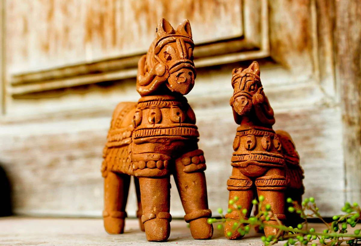 There are two types of terracotta products from Puducherry, glazed and unglazed pottery. Both versions are being put to use to create modern design too. The Kulalar community of Puducherry is most involved in creating this art, and they have been doing so for generations. They have created a terracotta horse over six-foot-tall, with removable ears, legs, tail, and head. The community is reputed to be able to develop the one-inch-tall idol of Ganesha in under two minutes.