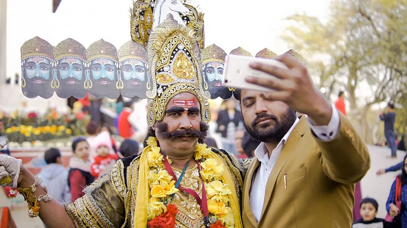 As darkness fell, an area dedicated to the Ferriswheels and other such entertainment-driven mechanisms lit up, drawing crowds. Screams of thrill and fear muddled together constituted the background noise as families and couplesindulged in cotton candy and delicious food. There were umpteen photo opportunities for tourists as men dressed up as characters from theEpics. In fact, a child stood next to Ravana as his parents took a picture and the little one couldn't stop smiling. Walk around some more and at this point, you just might come across Rama taking a break, enjoying an ice cream cone