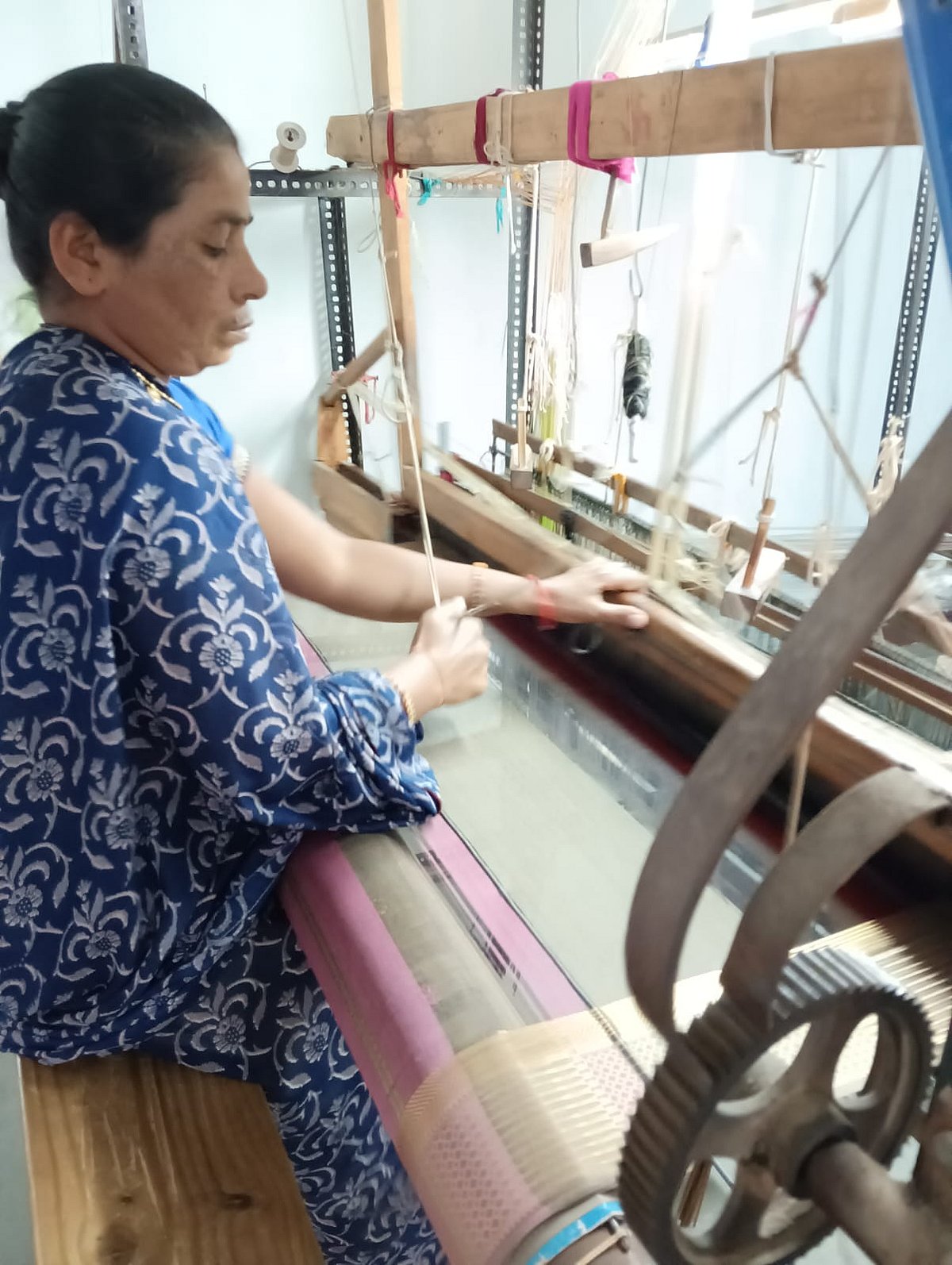 It takes four to five days for one saree to be complete. The feather-light weight is due to the proportionate mixing of cotton with silk which also gives a nice shine to the finished products.