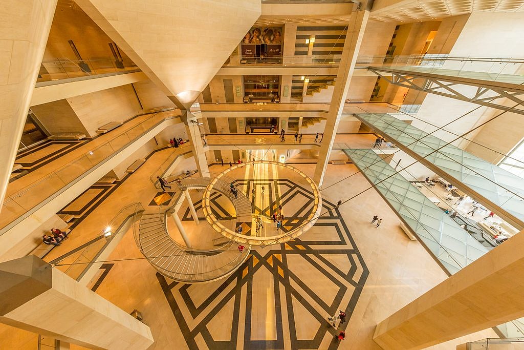 With the sweeping promenade of The Corniche, Dohas famous waterfront, behind us, we drove past a tree-lined pathway to reach the bridge that connected to the artificial island on which stood Qatars Museum of Islamic Art. It is said that much-acclaimed architect IM Pei was drawn out of his retirement to design this museum. But Pei said that the museum must be in an area where it would not be crowded out by other buildings. And thus it stands today, surrounded by a huge park and the sea.