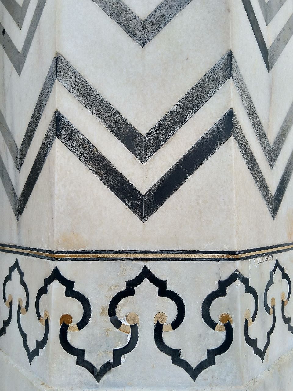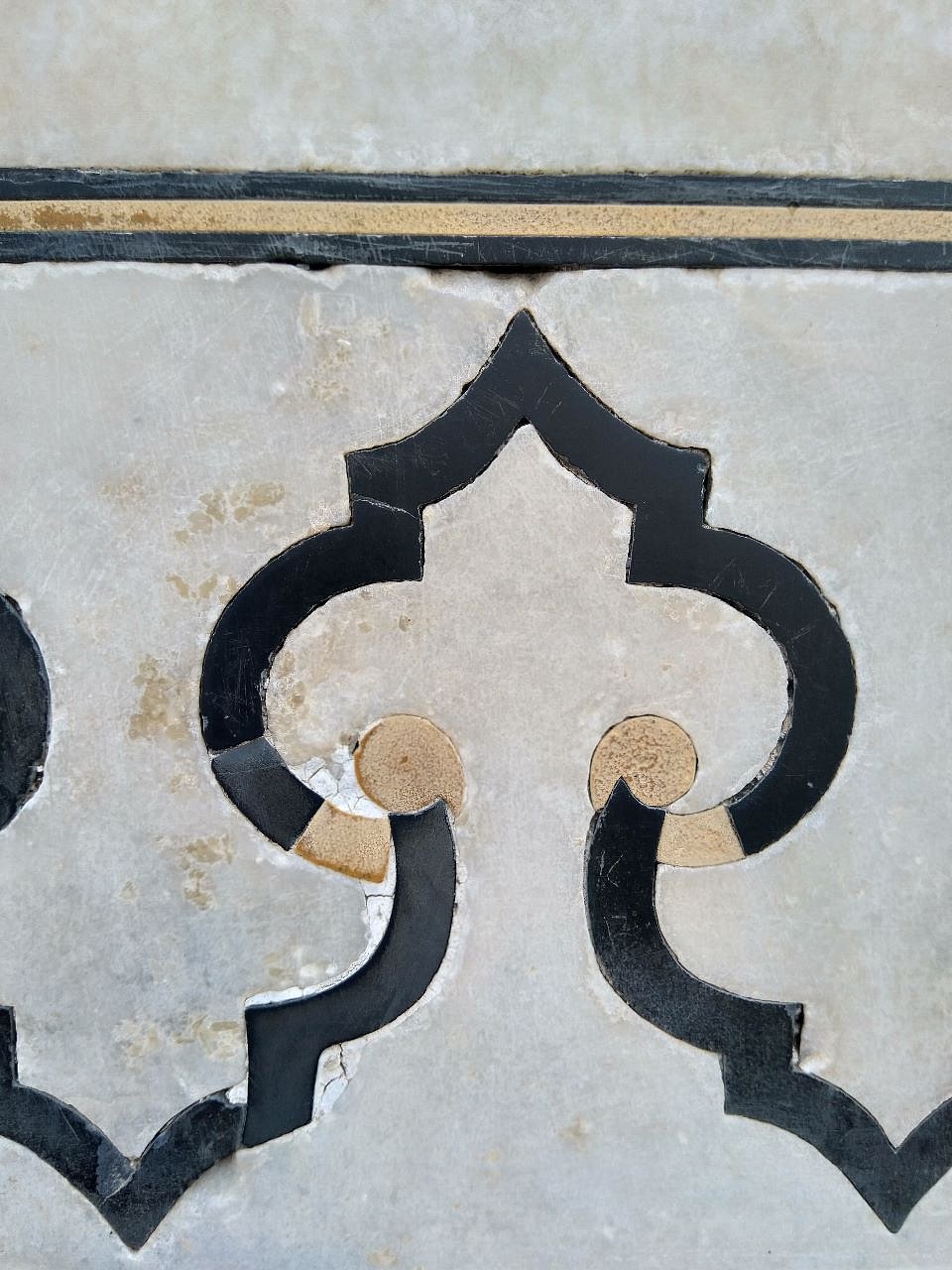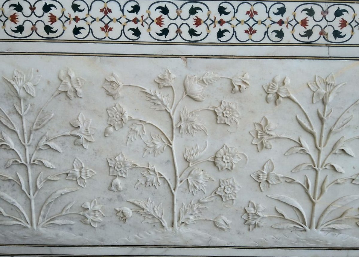 The designs and patterns on the walls are exquisite, to say the least. That each panel has modern-day, laser-work-like perfection speaks for the quality of work the artisans dedicated to the mausoleum. The marble walls of the tomb have been covered with bas relief work on dado, and extensive calligraphic and floral inlay work, with black and yellow marble, and semi-precious stone, on the upper walls.
