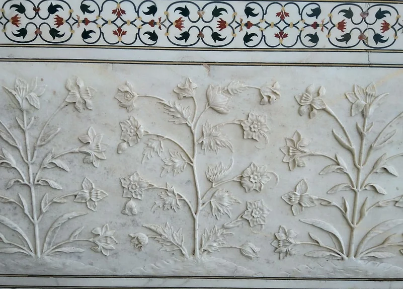 A heady fusion of Persian, Turkish, Indian, and Islamic architecture, the luminous white of the Taj Mahal, as is reported, was referred to by Mughal court poets as the true dawn, which makes the beholder forget about reaching for the highest paradise. The Taj is highly symbolic, and this is evident from the white marble and red sandstone. According to ancient Hindu texts on architecture, the priestly caste&rsquos buildings should be white, and the warrior caste&rsquos red. Shah Jahan employed both colours to form a connection to the two politically influential strata of society at the time. Also, the colour red had a Persian relationship, as all royal tents were always dyed scarlet.