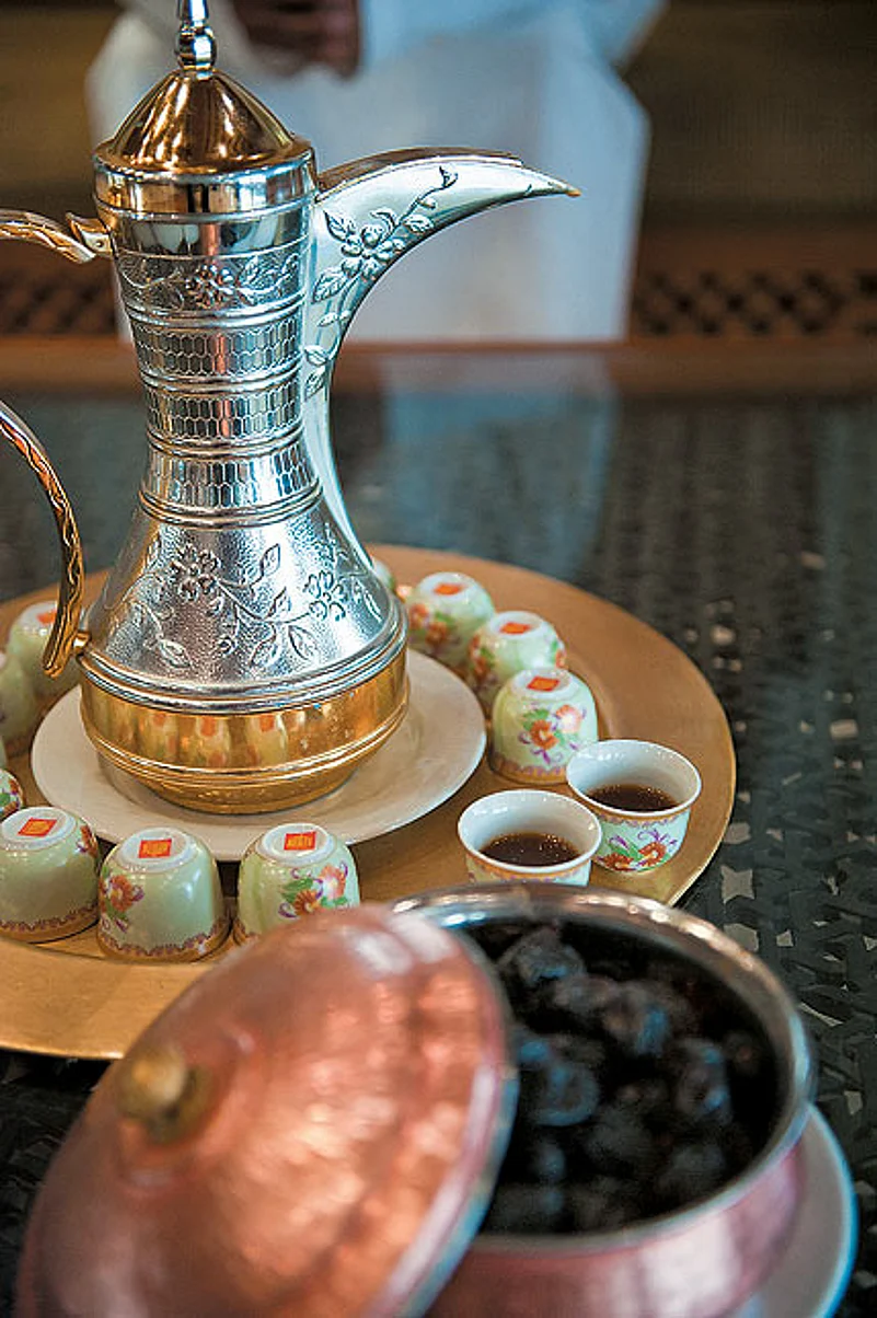 Travellers in Oman may not bump into Sindbad or stumble upon Alibaba&rsquos cave of treasures. But they will certainly spot familiar scenes&mdashcolourful souks and storybook castles jewelled lamps and shops piled high with frankincense. The men wear bright white dishdashas and turbans or little embroidered caps. Visitors are invariably greeted with a tiny cup of kahwa coffee and sticky dates. Indeed, sitting in a Bedouin tent in the Sharqiya Sands or picnicking in a date-palm-fringed wadi, it is easy to believe that we have stepped back in time and into the pages of our beloved, well-thumbed copy of One Thousand and One Nights.