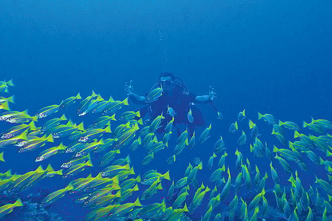Imagine watching a brain coral opening up andwaving its tentacles about for its dinner. Or various crustaceans taking their evening constitutional. Or imagine the phosphorescent flashes emitted by irritable plankton that light up the dark waters of the night. Night-diving is becoming increasingly popular in Oman, for many reasons. The underwater flashlights bring out the true colour of the fish and corals. The phosphorescence in the waters is extraordinarily high. There are many excellent dive sites in and around Muscat&mdashespecially the Damaniyat Islands with its pristine coral gardens and abundant sea life. Also, the water never gets uncomfortably cold, so you don&rsquot need to freeze and shiver in order to enjoy these nocturnal miracles.