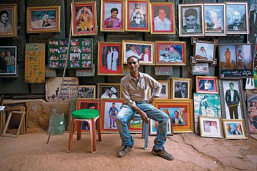 P. Kumar, proprietor of Sri Lakshmi Venkateshwara Frame Works (8B, BVK Iyengar Road) is a collector of some 65,000 vintage pictures of Rajkumar, the late iconic Kannada movie star. Outside his shop, on the surface of some kind of electric transformer, he&rsquos hosting an exhibition of selected priceless im­ages &mdash some are for sale, some are even signed.