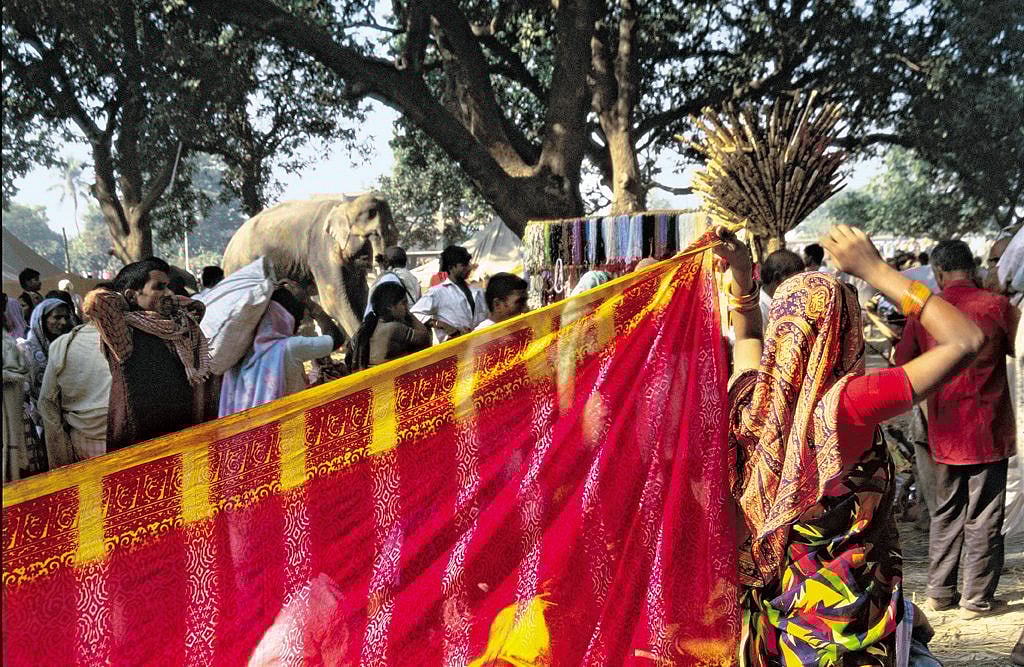 Held since the time of Aurangzeb, the Sonepur Mela fittingly for one that is described in all guide books as the largest cattle fair in Asia is a gigantic kaleidoscope of primary colours and primary noises. Every year in November, at the occasion of Kartik Purnima, faith and commerce keep their annual appointment at this overgrown village at the confluence of the Gandak and Ganga, an hour away from Patna. Immense crowds assemble, the number of which it is impossible to estimate... the roads are thronged for days..., said an awestruck gazetteer in the early 20th century, and the description holds good even today.