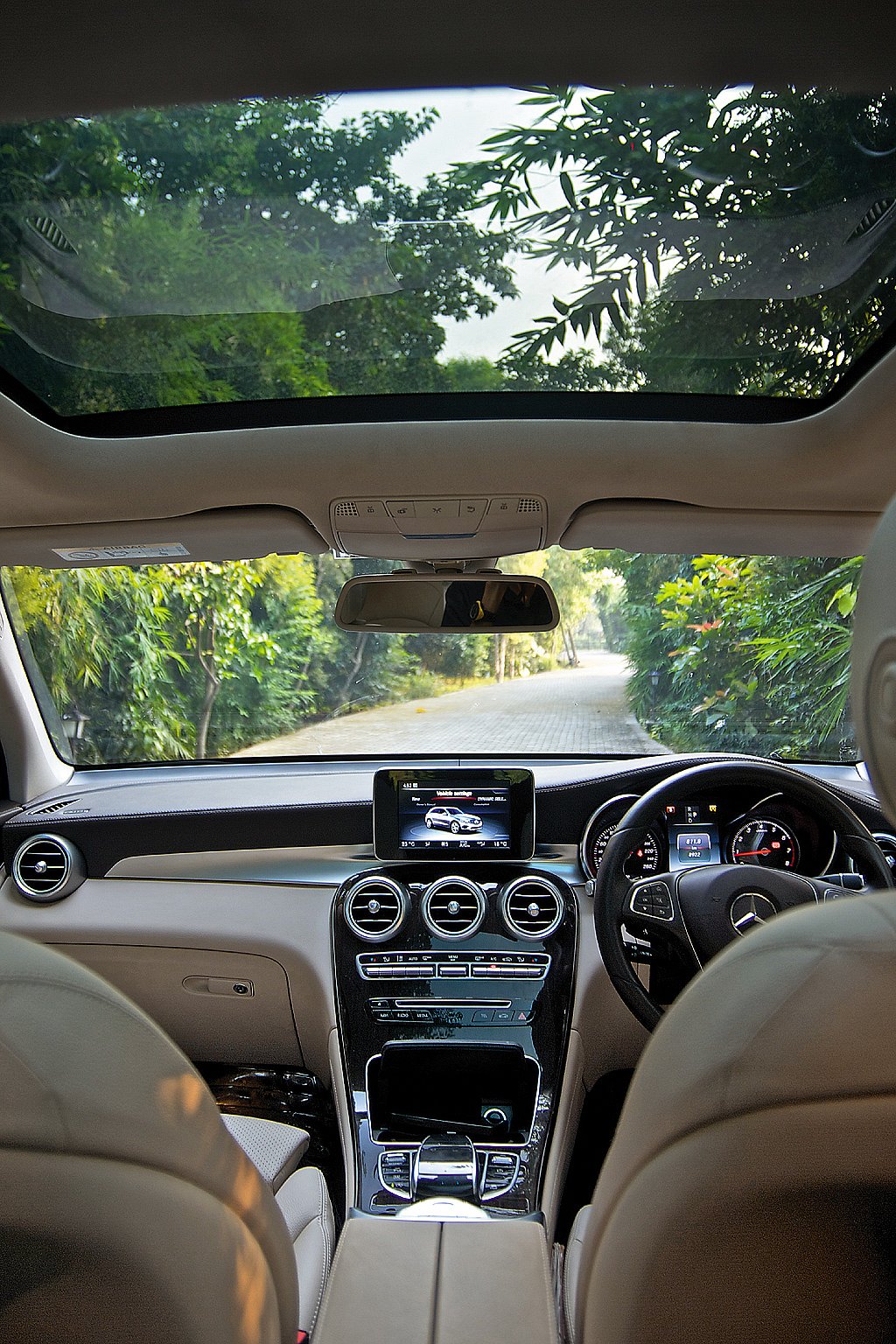 The sheer number of controls on the central panel and around the wheel can make the interior look like the cockpit of a jet. But the ivory and brown palette of the spacious interiors lends it a warm, cosy feeling. Add electronically adjustable seats which memorise four sets of settings for different drivers (or moods) and weve got ourselves a lounge. In fact, Shiv and I were having so much fun cruising that we decided to put on the ultimate Indian road trip song, Dil Chahta Hai, to commemorate the ride. It looked like wed make it to Corbett in just four and a half hours when we decided to check the navigation and realised we had missed a turn. And so, as every interesting road trip goes, we ended up on an unknown detour through a small town. The proximity sensors of the car worked wonders when it came to tight traffic jams and in avoiding pedestrians who couldnt help staring at a Mercedes-Benz SUV trying to dissect village traffic. The sensors also detected bushes and pavements while reversing and parking, which made them integral to maintaining the cars picture-perfect finish.