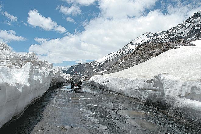 We started early the next morning, refuelled, and began the climb to Rohtang, the mountain pass at 3,990m above sea level. After some terrific riding in excellent weather, we hit the traffic jam that is Snow Point. In the struggle to inch up in traffic, the clutch plates of most bikes became overheated. Most people found their clutch slipping. The engines were switched off and we cooled our heels and clutch plates for two hours, inhaling diesel fumes and watching honeymooners and picnickers living out their fantasies in snow. As soon as we got to move, we realised that the traffic snarl was a matter of half a kilometre. Beyond the pass, the crowds were all gone, the vegetation was different, and the only vehicles on the road were trucks, jeeps, and Enfields.