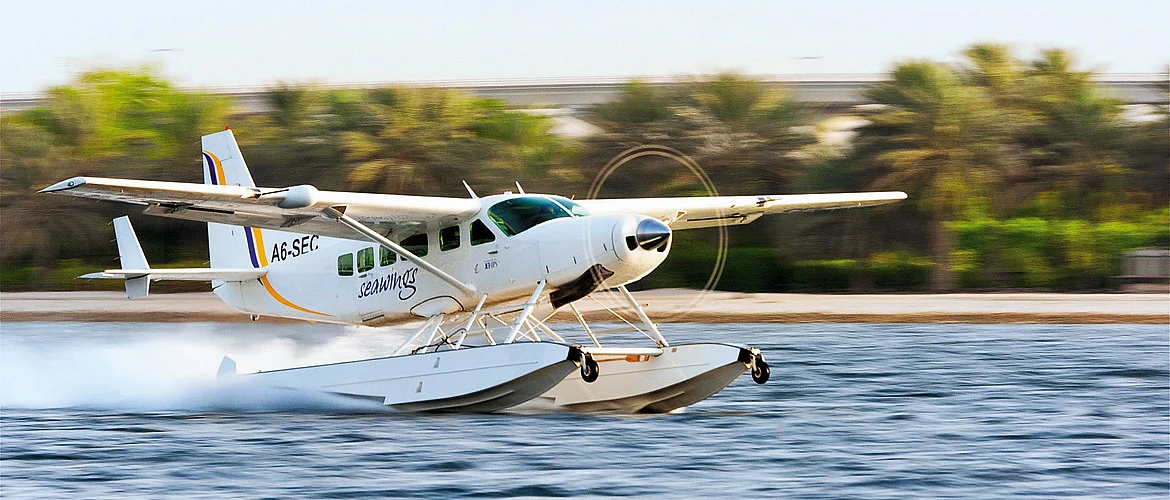 While Burj Khalifa offers a terrific birds- eye view, it is quite another thing to leave the stationary perch and see Dubai from the air, like a bird in flight. SeaWings, Dubais ultimate luxury excursion, took off from Dubai Creek for a 25-minute seaplane tour of the city, with 15 minutes of pure flying time. The 10-seater Cessna Caravan cruised along the coastline past landmarks like Port Rashid, Dubais old port thats now a cruise terminal. Its only from the air that the 300 man-made islets of The World Islands, using sand dredged from the sea, can be seen in the shape of a world map. Most are still uninhabited, except the Sultans pleasure playground Greenland and Lebanon, the only island in commercial use.
