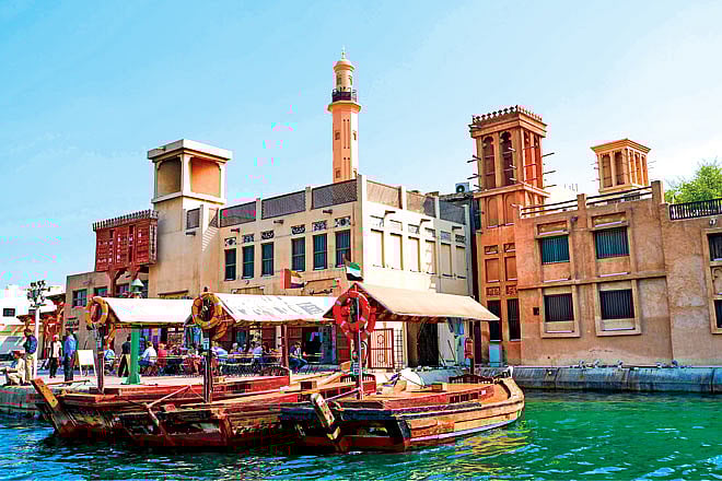 Id Souk Marine Station with the Old Souk in the background at the Al Bastakiya Historic Quarter