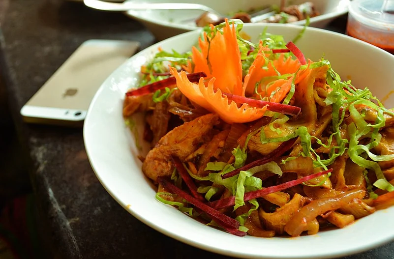 Tibetan, Bhutanese and even a few Korean restaurants line the colonys thin alleyways, and domestic and international tourists keep darting in and out. Clearly, all establishments had great things on offer. Sensing my wavering allegiances, Akansha made the first decisionour debut would be at Dolma House. One of the larger joints in the area, its a friendly, inviting and no-frills establishment with affordable prices to boot. Overhead lamps provide a
