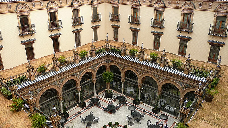 > Seville A five-star option includes Hotel Alfonso XIII (from300 with breakfasthotel-alfonsoxiii.com). A boutique hotel option is Corral del Rey (from300corraldelrey.com).Mid-range options are The Hotel Vincci La Rbida (from105vinccihoteles.com), Hotel Doa Mara (from107 hdmaria.com) and Hotel Las Casas de la Juderia (from130casasypalacios.com). Hostal Sierpes(from65 hsierpes.com) or the Hostal Picasso(from65 34 954-220-521) are the cheaper options.