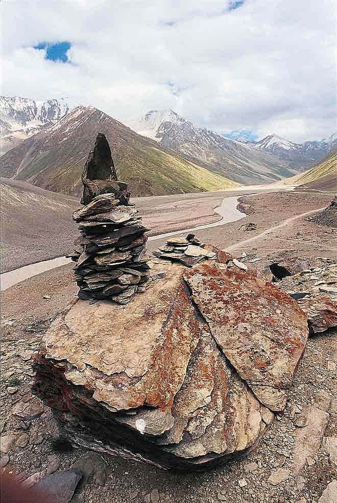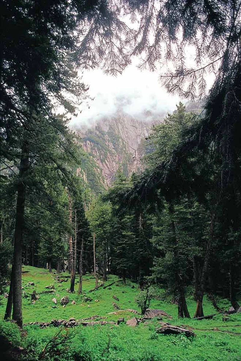 After crossing the tree line, the landscape began to transform yet again... From flower-dotted valleys graduating to sparse conifer groves, then grassy, and then thicker alpine woods. At our campsite at Langbuk I met the only other trekkers on the route &mdash an Israeli guy and two European women who had met in Kinnaur and were doing the same trek in the reverse direction. They had built a &lsquotent&rsquo out of blue plastic sheet and hired a horseman, along with his two horses to carry luggage. A whacky old Kinnauri shepherd accompanied them, gulping occasionally from a hip flask. When he wasn&rsquot bouncing to the tunes of Israeli pop music on the Walkman, he was teaching the girls to knit mufflers.