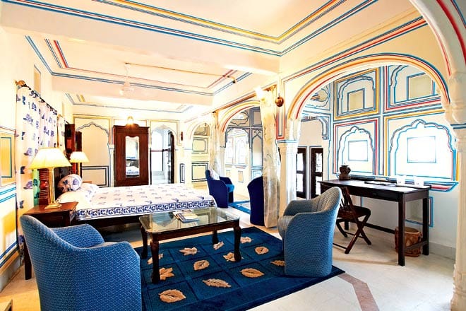 Outside of Udaipur, we spent two nights at serene Devigarh. An 18th-century palace, Devigarh employs an approach similar to Raas (the two are sister concerns) with the outsides hav­ing been left untouched and the insides thoroughly modernised and coated in Mediterranean white.