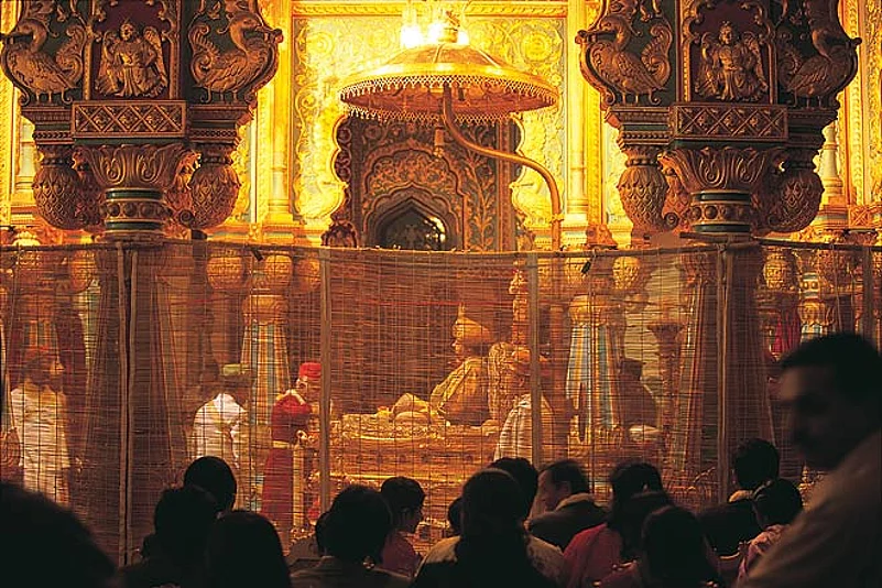 There is a moment worth witnessing every evening, when the sun sets and all 96,200 palace lights come on at once, greeted by a spontaneous gasp of awe from the assembled crowd. Even I was impressed, although I had thought myself immune to such standard-issue tourist postcard images. Less impressive was what followed&mdasha two-hour wait for a bharatanatyam performance to begin, while politicians and bureaucrats took turns making longwinded speeches extolling the virtues of Mysore.