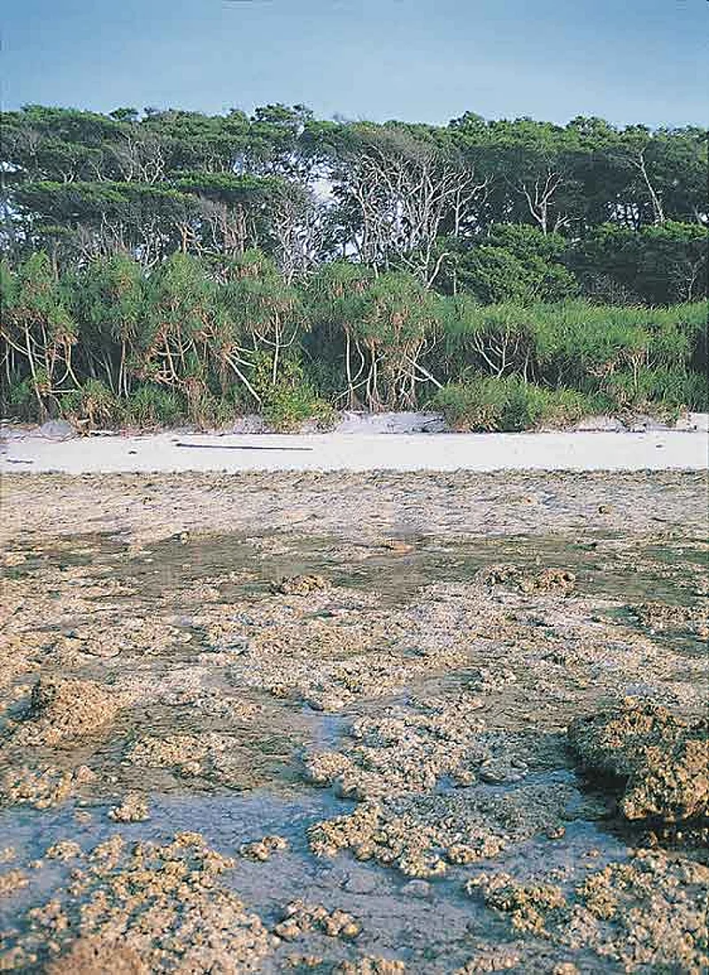 We woke up early the next morning to see enormous tractor tracks up and down the beach&mdashnesting green sea turtle tracks. High above us a pair of white-bellied sea eagles wheeled over the island, like guardian angels. After a quick breakfast, everyone kitted up and set off for a walk into the island. It&rsquos a tiny island, only 161 ha. Along the forest edge the sand moved with millions of hermit crabs of varying shapes and sizes and the much larger land crabs of different colours from brown, orange to yellow. Tall pandanus trees shielded the forest from the strong winds blowing off the ocean. The further inland we went, the taller the trees rose. The soil was sandy and several trees had keeled over. We found pieces of broken coral, seashells and other relics of a time long ago when this island was merely a patch of ocean bed.