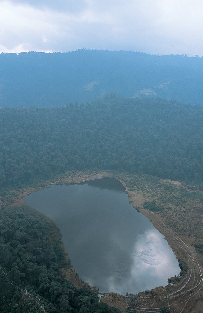The Buddha had other revelations in mind for us. The Khecheopari lake shimmers like a magical emerald ringed around by the bright jewels of fluttering da-cho that the faithful have planted. I can see the wind painting on the waters of this most sacred of lakes, said to fulfil wishes and from my vantage point truly kept leaflessly clear by birds.