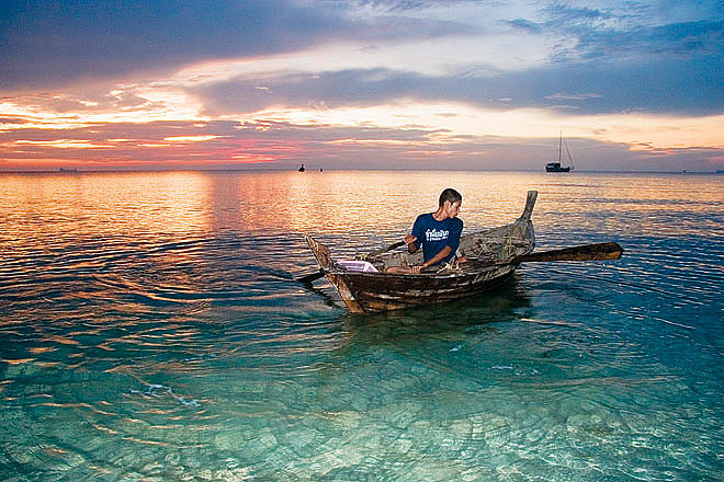A quiet sunset later, we ride back to the north of Lanta Yai to visit the sea-gypsy village of Old Town. &ldquoIndonesian, Malay and Chinese people have lived together here for a long time,&rdquo says Mat, &ldquoThey came by boat over many hundred years, and stayed.&rdquo Darkness falls as we wander the village, marvelling at the late evening sea view from the long pier and beachside cafés. The next day dawns bright and clear, and my swimsuit and I are absolutely ready to embark on the four-island tour.