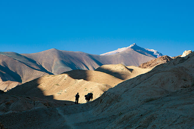 Mountain villages hemmed in by steep granite walls of volcanic rock, wild tangles of warped rock formations etched against magnificent blue skies, wind-eroded spires, glittering turquoise rivers &mdash the trek from western Ladakh into the isolated arid triangle of the remote Zanskar region brings to life some of the most spectacular and dramatic landscapes the trans-Himalaya has to offer.
