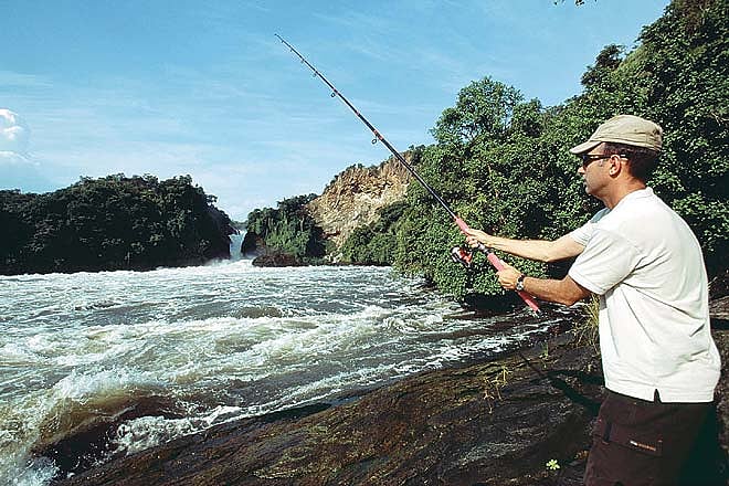 I had arranged a UWA boat to take us on a half-day angling trip on the Nile. We crisscrossed the river, under the expert guidance of the boat&rsquos captain. The real challenge was to catch the Nile perch. Legend has it that the largest one caught so far (on Lake Victoria) weighed in at 232kg. What we did bag in the end was a magnificent 20kg catfish and a smaller 10kg one. This is one of Uganda&rsquos best-kept secrets, hidden for far too long.