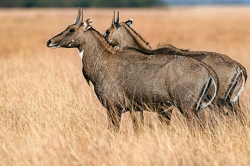 The only sign of human activity was at a clearing. Trees had been cut down to make way for grasslands. With winter just ending, the shoots of grass were still not out. But when fully green, they would be grazing grounds for the hundreds of spotted deer in Pawalgarh, and thus hunting grounds for tigers and leopards. Besides the chital, Pawalgarh is home to other antlers like the nilgai, and kakad, a small goat-like deer. There were also hares, wild boarsand langurs. Pawalgarh also has over 350 species of birds. Among the birds found here are the black stork, the Great Slaty Woodpecker, and a variety of hornbills.