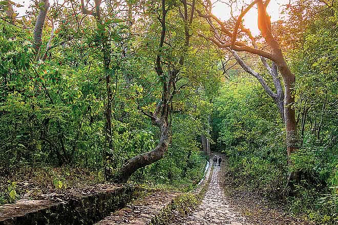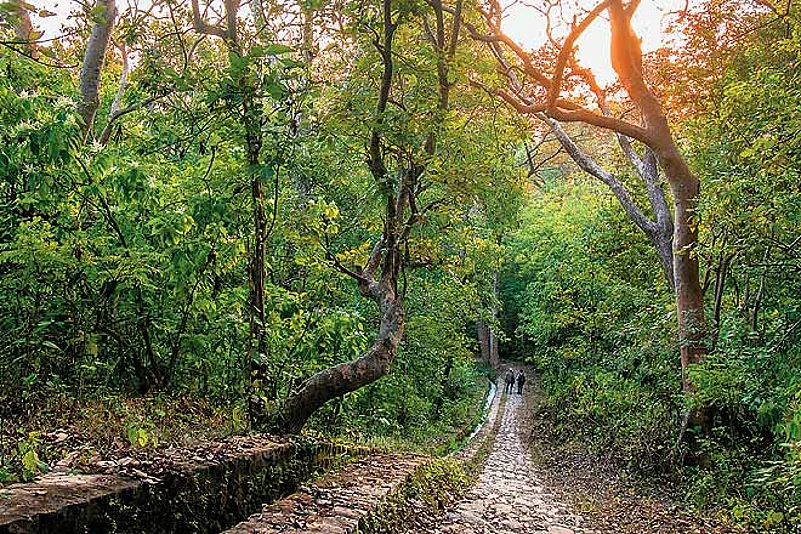 A few minutes later, we climbed up the forested hill and entered the Hathi Galiyar elephant trail. Elephant herds, we were told, often take the same path, from which they rarely stray when travelling from one &lsquoelephant corridor&rsquo to another. I was struck by the sheer size of the sal and other trees. Pawalgarh is a virgin forest with very little sign of human incursion.