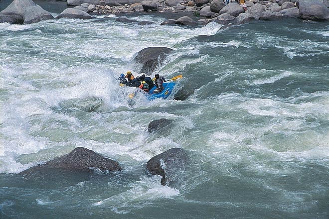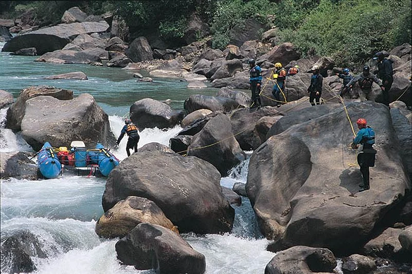 With the rough rapids of Tiuni Bazaar waiting, though, I&rsquom not thinking of religion or livestock. In deference to the film guys, we&rsquoll be running this stretch in stages first the safety kayaks, then the pontoon boats, followed initially by the other raft and finally our own. The crowd watches in disbelief as the guide Rana peels out of the eddy and disappears downstream early in the trip, when I asked this whitewater veteran about the challenges of running the Tons, he brightly observed, &ldquoOn this river, man, shit is happening all the time.&rdquo Later, we get a report that the guide was ejected from his raft when it hit the big hole at the bottom of the bazaar. He emerged unharmed, but the rapid was renamed in his honour&mdash Class V (minus) Rana. Soon we&rsquore zinging along the crests of mid-sized waves, hoping to avoid what happened to Rana. A two-hour scout concludes with a 10-minute adventure&mdashand with Tiuni conquered, the day&rsquos float ends.