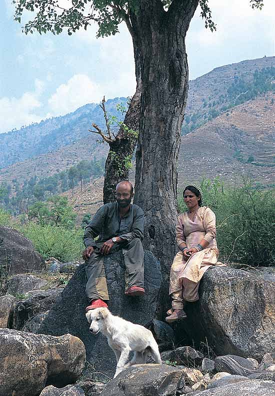 In April, of course, we&rsquore just one of many parties headed into the Himalaya. We encounter herds of goat, cattle, and buffalo driven uphill by Gujar tribesmen, known for their colourful clothing and nomadic lifestyle. Unlike the diminutive local hill tribes, the Gujars are tall and fine-featured. Their shy women offer teasing glimpses of beautiful light eyes. The proud, lean men wear turbans of various hues and boast beards dyed red. Unlike the Hindu pilgrims who also flood the Garhwal Himalaya annually, the Gujars come not for spiritual redemption but to take advantage of cooler weather and greener pastures when the plains heat up. Despite these efforts, much of their livestock appears worse for the wear. Sharp hipbones and xylophone ribcages jut from beneath the dust-coated skin of cows and buffaloes. On scouting breaks, we frequently catch a nauseating whiff of rotting flesh, the remains of animals too lame or rundown to make the trip.