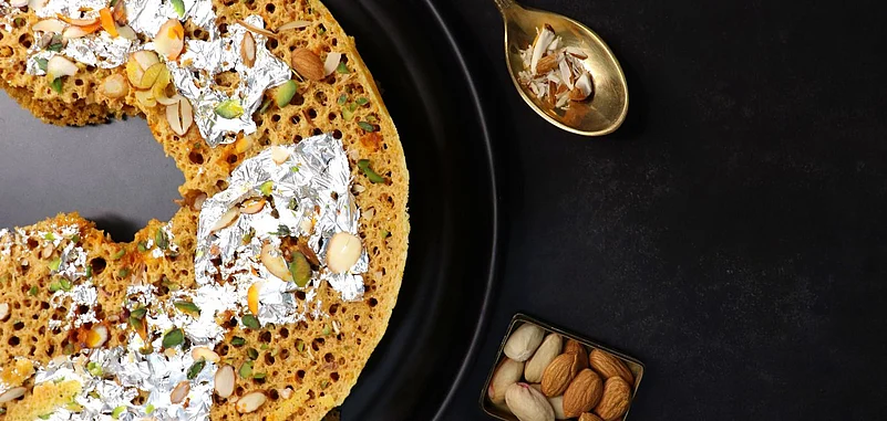 If you are in Rajasthan and you don&rsquot try ghevar then your trip has been wasted. The quintessential dessert of the state, this crispy honeycomb-like sweet deserves all the hype it garners. The crispy exterior is porous in texture which makes it perfect for heaping toppings. In this variation a hearty helping of creamy rabri is smeared on top of the ghevar which compliments the crunch of the dessert perfectly.