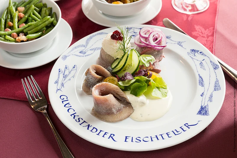 For more than a century, the most tender and delicious matje fish have come from the small town of Glückstadt on the Lower Elbe. They are processed by hand here, following old traditions. Because their name comes from the Dutch word 'meisjes' meaning 'young girls', matjes are also called 'damsel herrings'. They are in fact caught when young, and processed into matjes. Whether classic with onion rings, apple slices and gherkins or newly interpreted in curry-banana sauce or with herb dip - the fillets are always a delight. The people of Glückstadt love their fish. There is even a festival dedicated to the original Glückstädter Matjes. Every year in June, the Matjeswochen (matje weeks) are celebrated on the Elbe, where the first matje tasting of the season is made.
