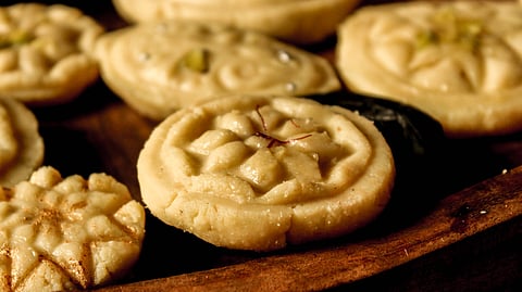 Nakur has always been a purist sandesh maker and nothing but. On the evening I visited, 1,000 litres of milk had just arrived and was being boiled and curdled into chana in batches, slow-drained, and taken to the heart of Nakur's sandesh operation head Uchit Narayan, the chana-maestro. A wiry man with an easy smile, Uchit sat on his haunches kneading a cloud of chana. This evening, he was going to produce 13 different qualities of kneading. Some he kneads barely at all, some he leaves medium grains in, and some he works into a smooth fluff. Each is the starting point of a different sandesh.