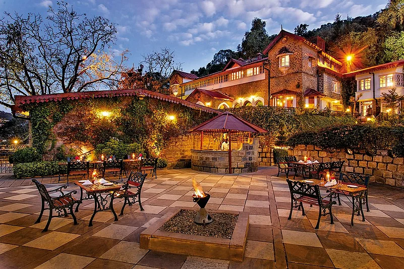 Formerly the residence of the Maharaja of Pilibhit, The Naini Retreat is a heritage hotel with a view. Located on the Ayarpatta Slopes at an altitude of 6,500 ft in Nainital, it has stunning views of Naini Lake. A palatial building with regally furnished bedrooms, the hotel is draped in old-world charm. The Maharaja Wing, the erstwhile royal residence, comes with five extravagant rooms, a private concierge and a library. Indian, Mughlai, Chinese and continental dishes are served in the dining rooms. Kumaoni food and traditional performances light up the evenings. Ayurvedic therapies can be combined here with meditation and yoga for holistic healing. The hotel provides guided nature walks and exclusive boat tours of Naini. You could also tee off at the century-old Raj Bhawan Golf Course, or take a yacht ride at the highest sailing club in the world.