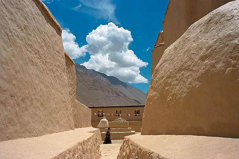 About a thousand years ago, regions comprising Kinnaur, Spiti and lower Ladakh were part of the Guge kingdom of Tibet, which played an important role in the second dissemination of Buddhism from India to Tibet. Some of the monasteries erected at this time, and their art, still survive, none more so than Tabo in Spiti. The main temple is the oldest structure, with beautiful clay sculptures of tantric deities like the Buddha Vairochana, Vajradharma and many sculptural mandalas and murals. The monastery was constructed between the 10th and 13th centuries, and its Assembly Hall and galleries are gems of western Himalayan art.