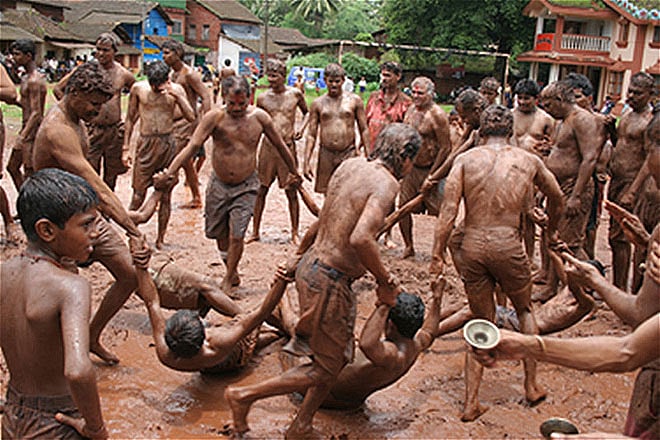 If you loved mud fights as a kid and you secretly wish to rewind the clock for that very reason, then the Chikal Kalo festival is tailor-made for you. Chikal Kalo literally means &lsquoplay in the mud&rsquo and nobody knows about the origins of the festival but it is said to be over 150 years old. Marcel, the town where the celebrations take place, holds the distinction of having the only Devki-Balkrishna temple in India. The day starts off with a round of bhajans at the Devki-Balkrishna temple, this is followed by generous distribution of oil to all the willing participants of the mud-play. Thereafter, the grand event commences. The beating of drums, bells and cymbals echo as the participants indulge in all sorts of mud games, ensuring each one is thoroughly bathed in mud by the end of it. Even if it is the kind of thing you&rsquove never done before, the celebrations can delight anyone in the mood for gambolling in a playground of mud minus the disapproving looks. The festival concludes with the customary breaking of a suspended &lsquodahi-ka-handi&rsquo by a human pyramid.
