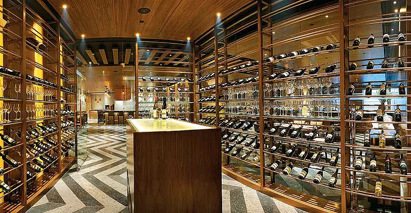 What the Spectra has is more of a wine wall to challenge China Right from the entrance and till the very other end, this edifice in glass seems to go on and on, becoming more a structural element defining and demarcating spaces within the restaurantand boasts a storage capacity running into thousands of bottles Definitely the most imposing. www.theleela.com