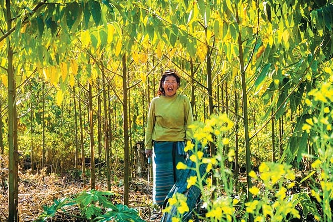 While getting here, I learnt the hard way that in these parts rivers pull rank. Trying to cross the Brahmaputra after dark, my ferry got stuck in the mud. The river extracted five hours in dues before letting me pass. The payoff, though, was im­mediate on the drive next morning from Pasighat. Arunachal showed its colours distant blue hills cradling cloud banks, gloomy woods with buttress roots textured in red lichen, a tur­quoise Siang river with dark green slopes rising from its white rocky shores. And everywhere, lithe women in sarongs doing all the heavy lifting without breaking a sweat.