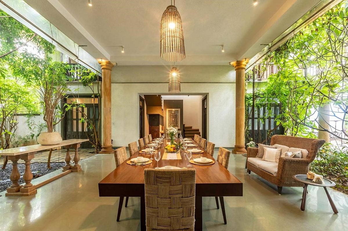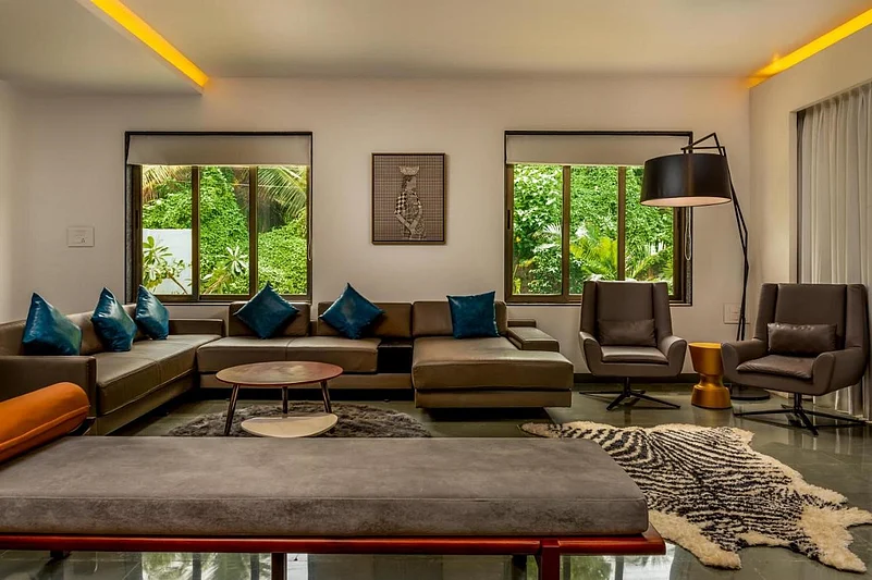 A tranquil retreat, Magnolia is a 5-bedroom luxurious villa surrounded by a quaint manicured garden with an abundance of palm and mango trees - a perfect place to cherish your childhood games, and maybe just relive them too With a private wrap-around outdoor pool, balconies overlooking the sprawling lush green lawns, and ample sit-out spaces for all age groups - this home can host around 10 guests. Its interior is adorned with vintage decor and paintings, that make the home exude an old-world charm - sure to make you feel all warm and fuzzy within.