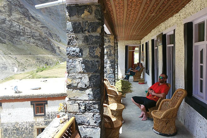 It&rsquos so remote that there aren&rsquot even the sort of electric lights that may be seen in towns like the better known Tabo, which is about a couple of scenic hours of driving away. Now imagine the night sky here, with stars sparkling like scattered diamonds. The Parahio River flows past this painterly scene, its water as pure as the banks are clean. Phukchong, situated away in the remote buffer zone of the Pin Valley National Park (just walk over to the NP), is a hamlet where tranquillity resonates soul-deep. It&rsquos not surprising that the village is the other-worldly location of a monastic retreat where monks and nuns withdraw to cottages that serve as their abode for months or even years, their spiritual master and the person who delivers them their sustenance being their only contact with the outside world. The owner of The Hermitage is also the latter. Among other things, he has a greenhouse to grow fresh fruits and vegetables, too. Spiti Ecosphere collaborated with him to create this lovely family-run guesthouse with four rooms on the ground floor, three rooms on the first, and a cosy lounge that invites visitors to put up their feet and get convivial. The locally styled aesthetic, with design inputs from Spiti Ecosphere, is charming and irresistible&mdashthe exteriors are made of a lot of strong stone but the interiors are warmly woodsy. Expect to enjoy hearty home-style north Indian food, and local specialities like piping hot thukpa and momos.