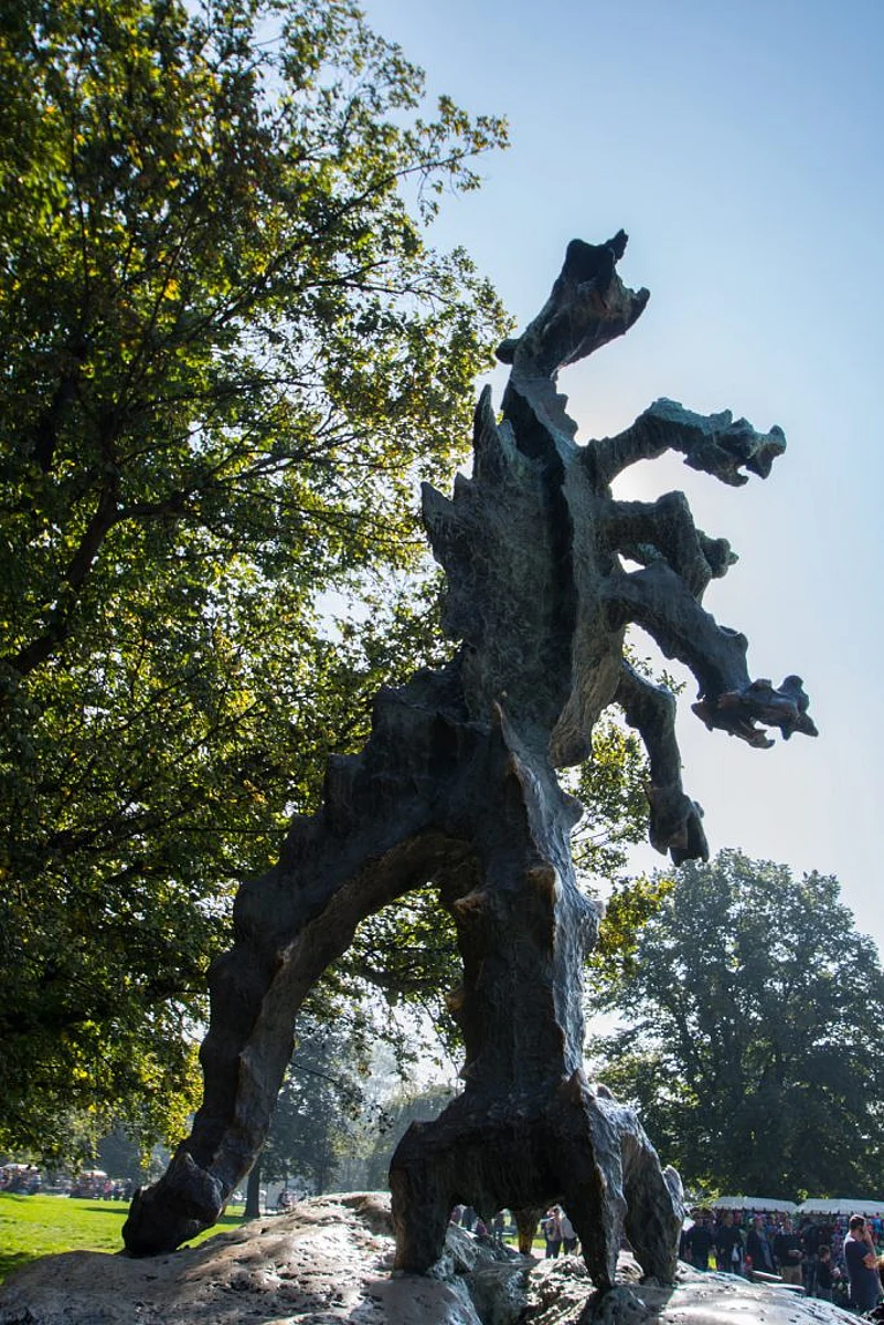 A long walk later as you emerge from the cave on the banks of the Vistula, a fire-breathing sculpted dragon greets you The bronze dragon was sculpted by Bronislaw Chromy and breathes fire at regular intervals, much to the delight of camera-wielding tourists