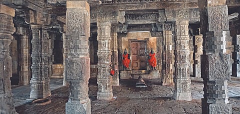 A few miles further north, another massive outcrop called Narthamalai (the hill of the Chettiyars) hides another magnificent secret. We find the hill after a few lost-in-translation-moments&mdashthe villagers speak only Tamil, and we only English and Hindi&mdashand begin our trek across its rocky surface until a temple capstone comes into view like a submarine periscope. And in a few minutes, the lost temple of Vijayalaya Choleeswaram, named after the founder of the imperial Chola dynasty, is revealed in all its sombre glory. It sits there like a compact star cruiser stranded in this strange place where it came to rest centuries ago. And the best part is that we have it all to ourselves, not another visitor in sight.