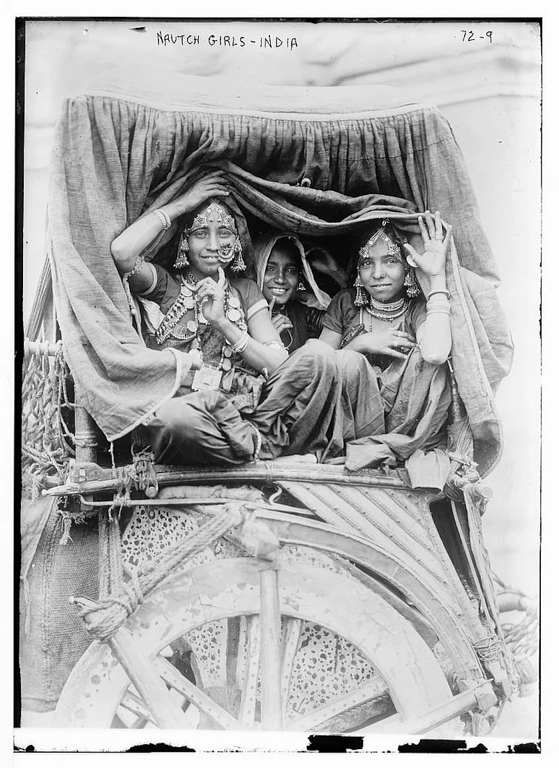 Nautch girls pose for the camera in 1922. These &lsquodancing girls&rsquo were not courtesans, nor were they the devotional performers like south India&rsquos devadasis. Instead, they were entertainers for men, women and children from all backgrounds, performing in varied social events like parties, weddings, and christenings. Their style would be a mix of classical and folk dances, and wandering troops (we suspect the girls in the photo belonged to one) would often deliver impromptu roadside shows or at ones at homes of richer patrons, such as Mughal courts, British officer bungalows, palaces of nawabs and zamindar homes. Their accompanying music Strains from the sarangi, and an upbeat tempo from manjeeras, dholaks and the tabla.
