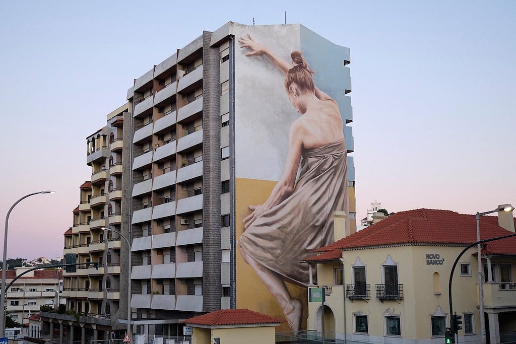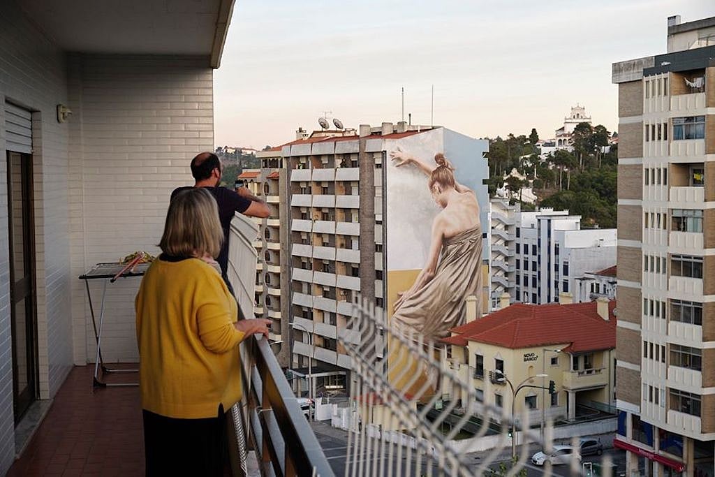 Guido van Helten is best known for his photorealistic installations exploring communities and identities. The Australian artist used Leiria-based contemporary dancer Inesa Markava as his muse for this gigantic mural of a woman resting against a building. The piece was created in October 2019 for public art fete Arte Pública Leiria and explores architecture, colour, and movement to liven up drab urban features. Van Helten completed a photographic study of the area&rsquos textures before embarking on this dreamy mural. You can get a glimpse into his thought process here.