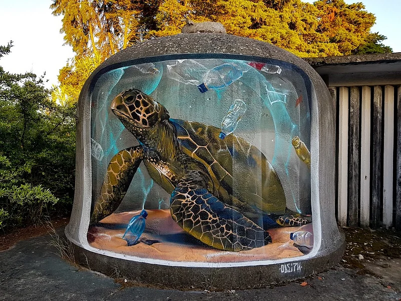 Sérgio &lsquoOdeith&rsquo is a Portuguese mural-maker and former tattoo artist based in Lisbon. He is popular for the 3D street art of birds, animals and insects he creates on concrete blocks and 90-degree corners. His darker anamorphic pieces are created in a self-proclaimed &lsquosomber 3D&rsquo style in abandoned places particularly famous was his graffiti transformation of a solid concrete block into a bus, which went viral in August 2019.