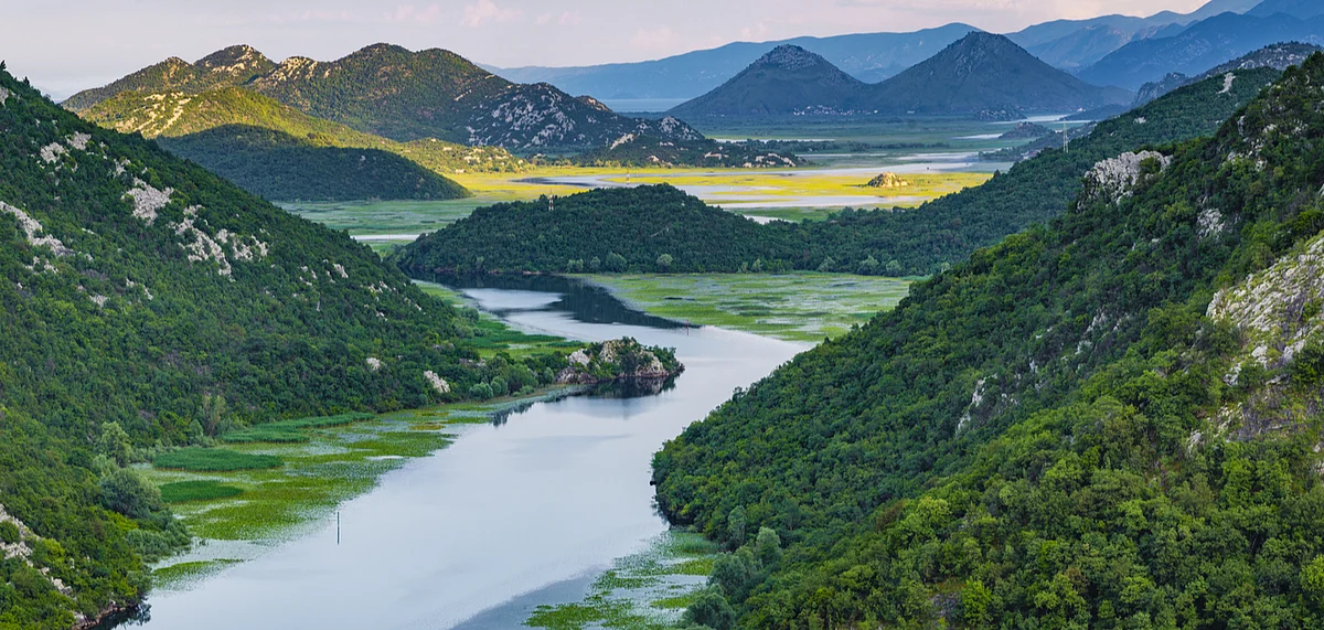 The dolphin-shaped Lake Skadar is a freshwater lake straddling two countries, Montenegro and Albania. This area has a very interesting history. Ancient Illyrians, Greeks and Romans, have all lived here.