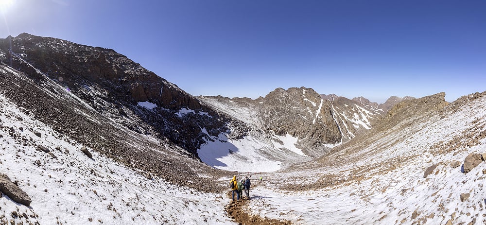 The highest peak in the Atlas Mountains, Morocco, and North Africa stands as Mount Toubkal, and is also called the Jebel Toubkal. About 60 kilometers south of Marrakesh, Toubkal is a section of the Atlas mountain range and a notable summit, the tallest for more than 2,000 kilometers, and a famous trekking destination. Views of a striking border crossed between land, ocean, and desert await you at the summit.