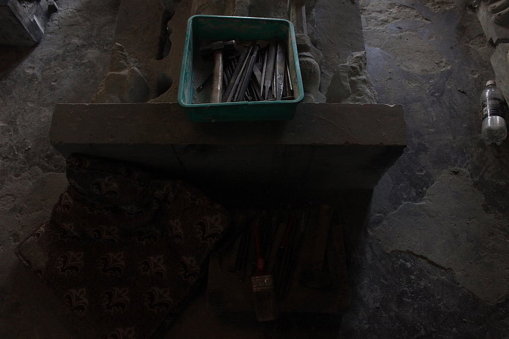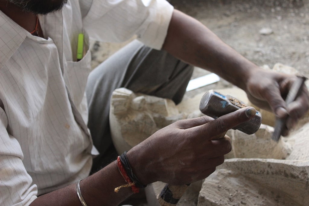 He uses his grandfather's designs (done on paper at that time) as references. Arun relies equally on marble and granite but sometimes also uses softer stones that are easier to cut into for carving. The time taken by him to complete the sculpture can vary anywhere between two weeks to a month, depending on the size.