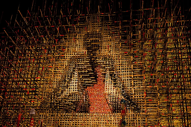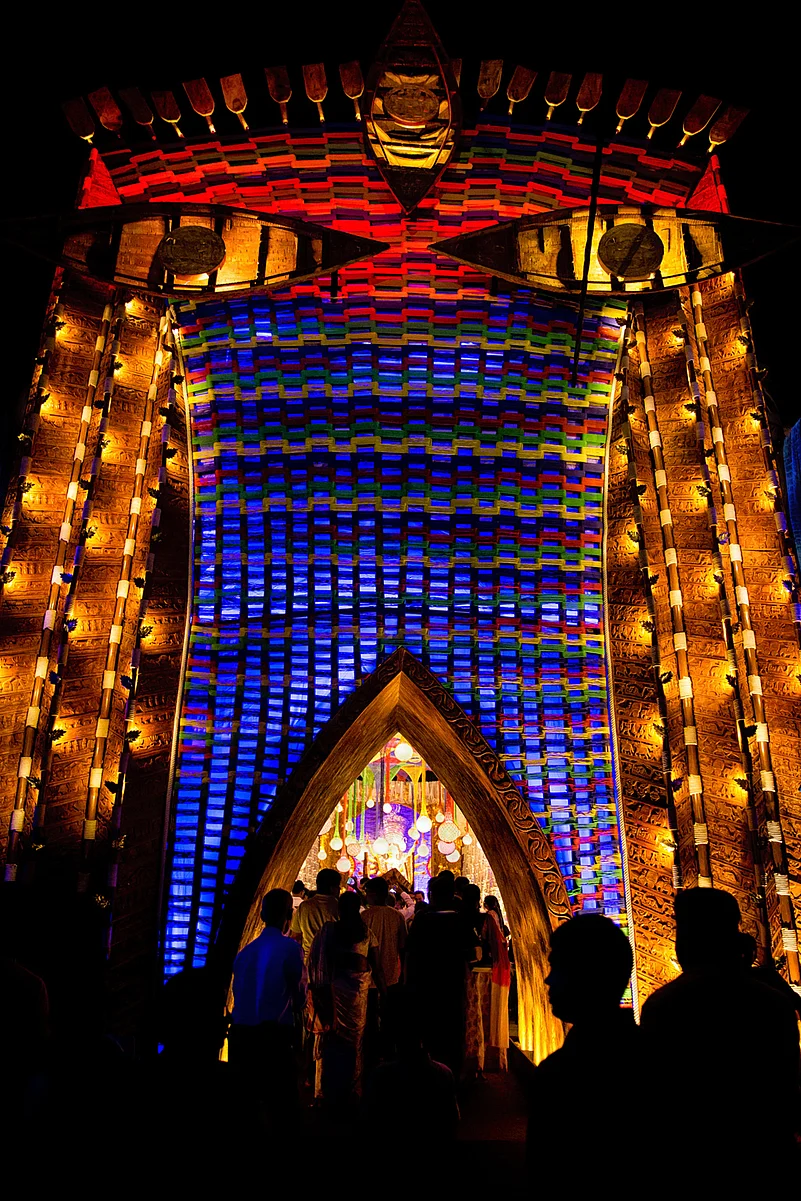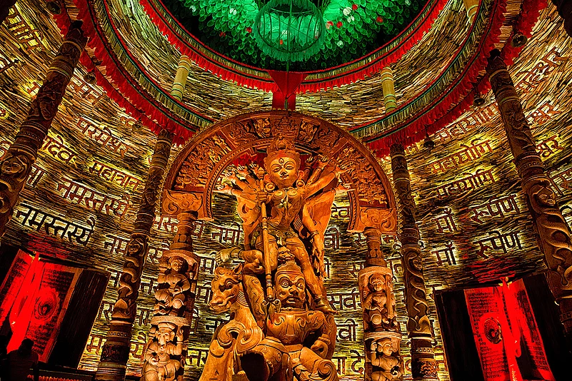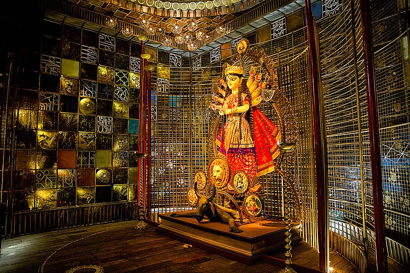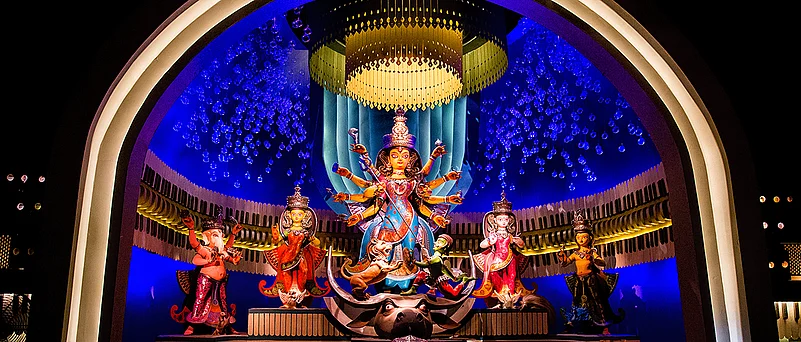 Kolkata turns into a walking art gallery during Durga Puja. From the well thought out themes of the pandals to beautifully crafted and painted idols of Maa and her family every organiser goes all out to create the best-possible experience for the awestruck visitors. As one pandal hops all night during the Pujo week to judge the creativity and indulge in selfies with Maa, Outlook Traveller brings you a hint of the gorgeousness that was Kolkata during Durga Puja.